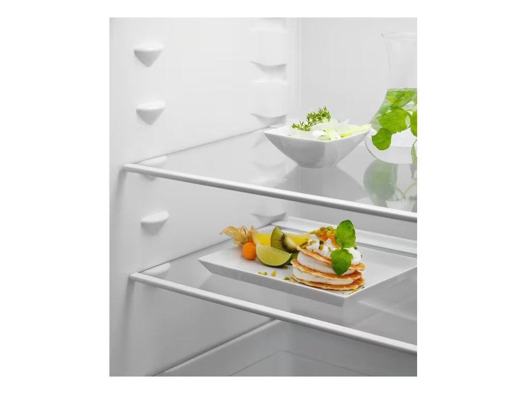 Vestavná monoklimatická lednička, objem 314l, barva bílá, energetická třída E, technologie DynamicAir, roční spotřeba energie (v kWh/rok): 114, šířka 54,6 cm, výška 177,2 cm.