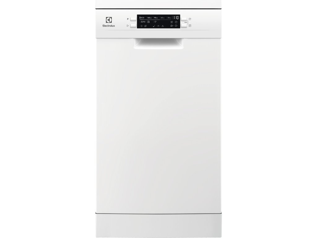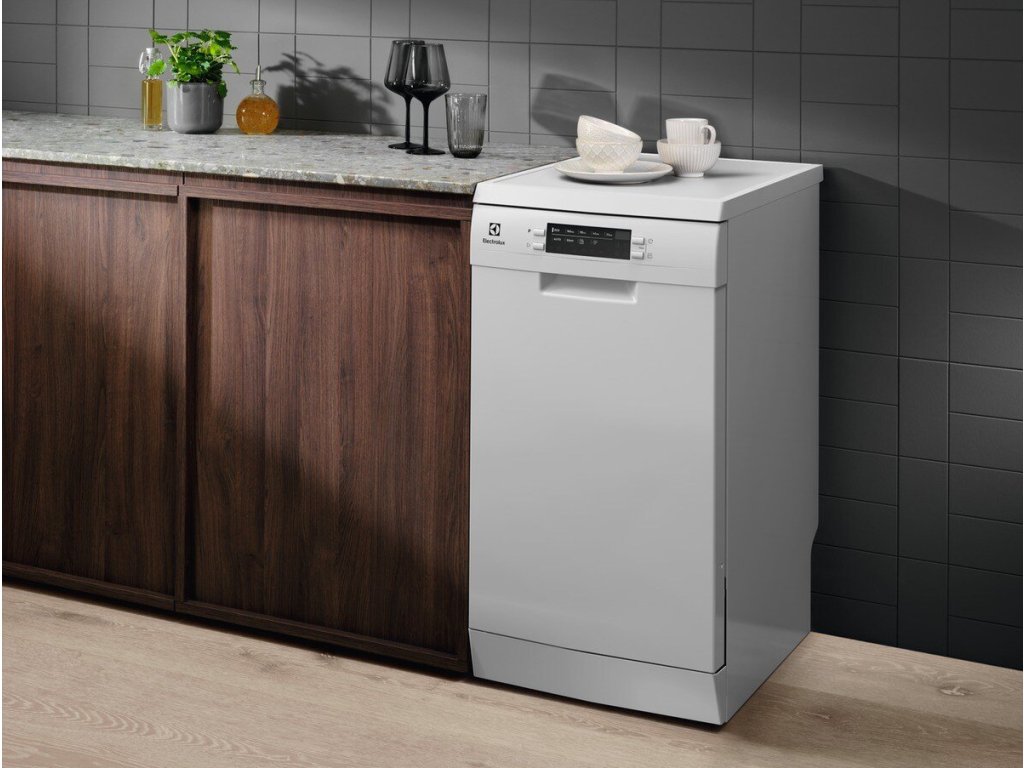 Volně stojící myčka nádobí, barva bílá, energetická třída F, kapacita sad nádobí: 9, 8 mycích programů, technologie AirDry, šířka 45 cm.
