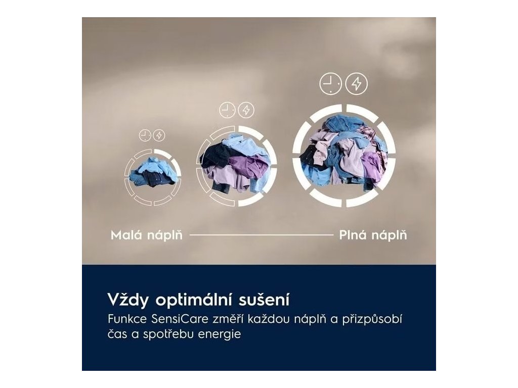 Senzor sušičky: snímá, kdy jsou šaty usušené na stanovené úrovni. Elektronika v této sušičce měří vlhkost tkaniny a určí konec sušení, když zbývající vlhkost je v souladu s vlhkostí požadovanou programem.