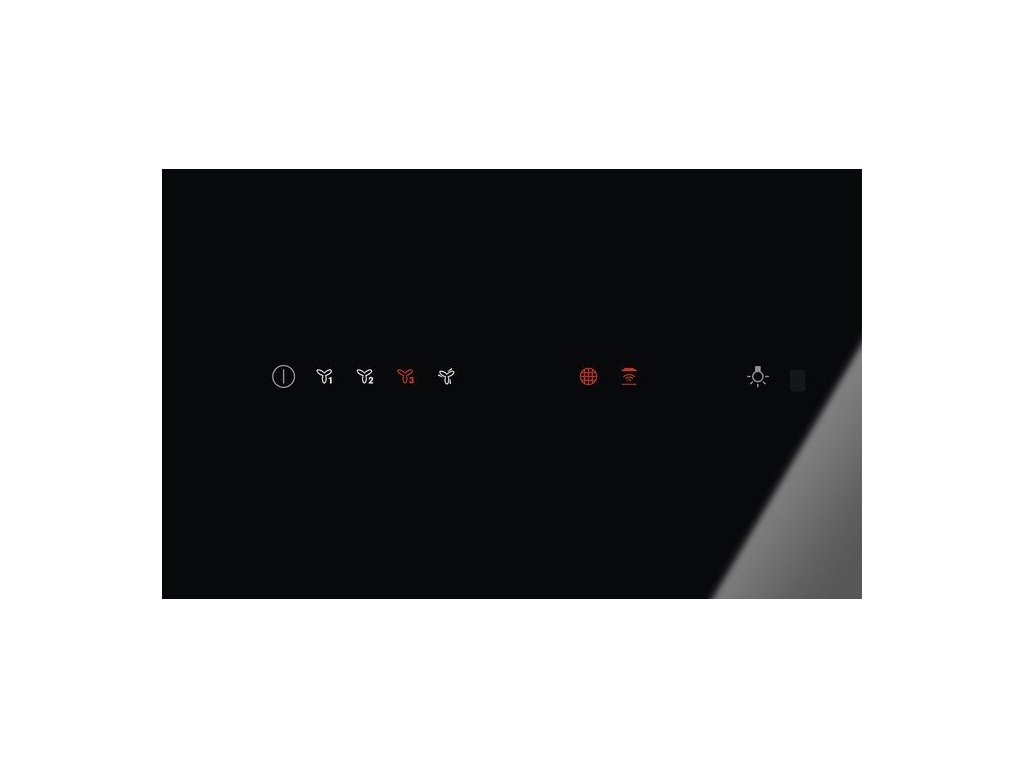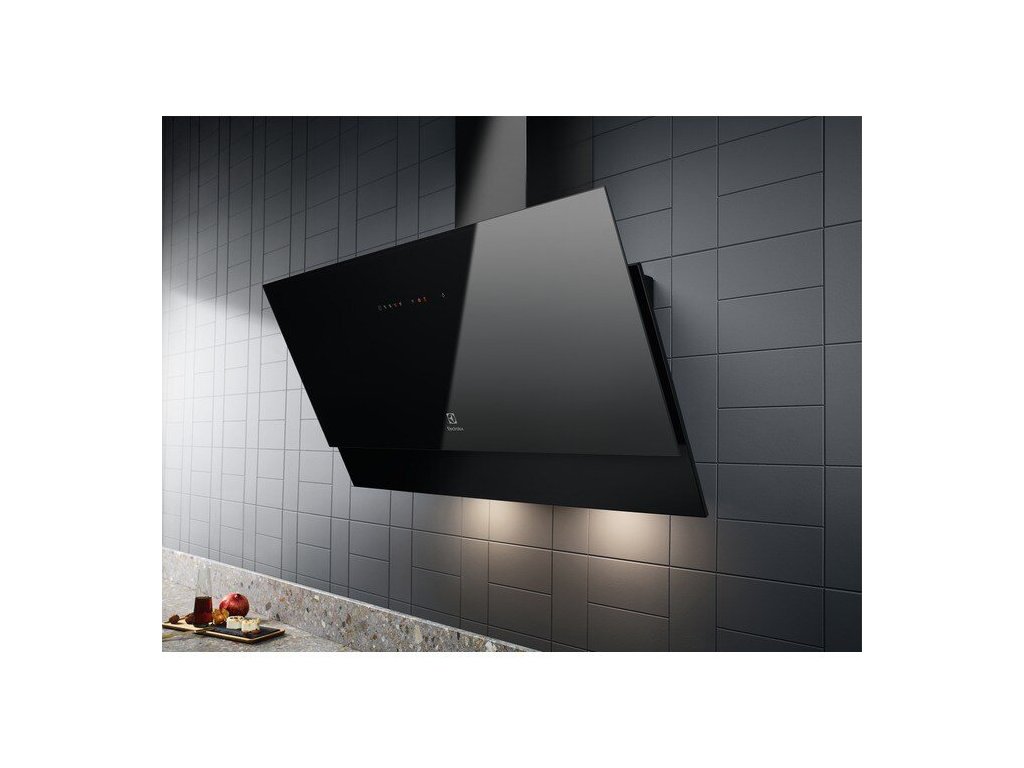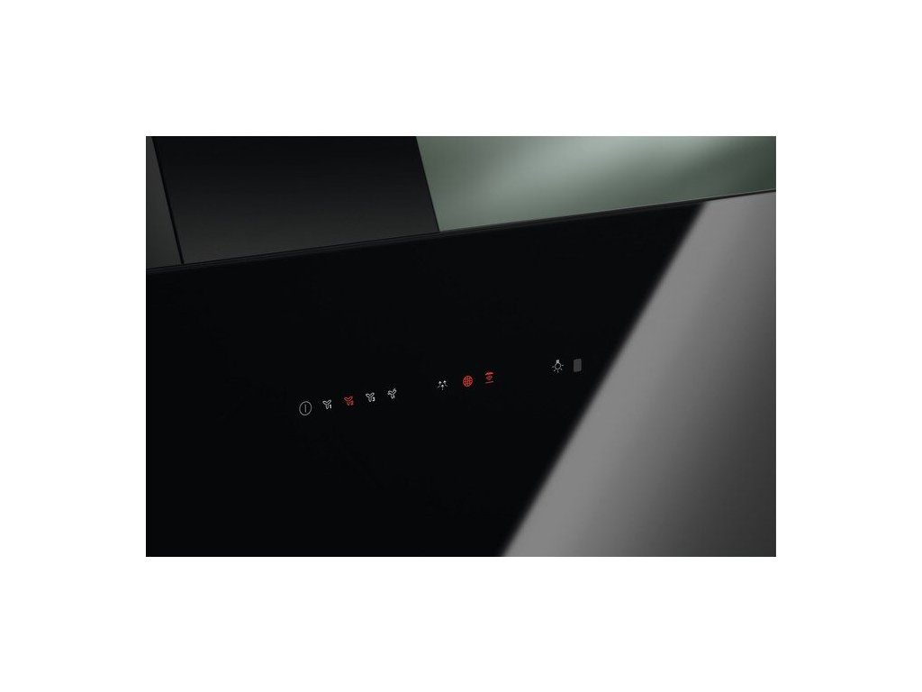 Komínová vertikální digestoř, barva černá, energetická třída C, max. výkon odsávání 600 m3/h, hlučnost 58 dB, 3 stupně výkonu + intenzivní, tukový filtr, led osvětlení, šířka 90 cm.