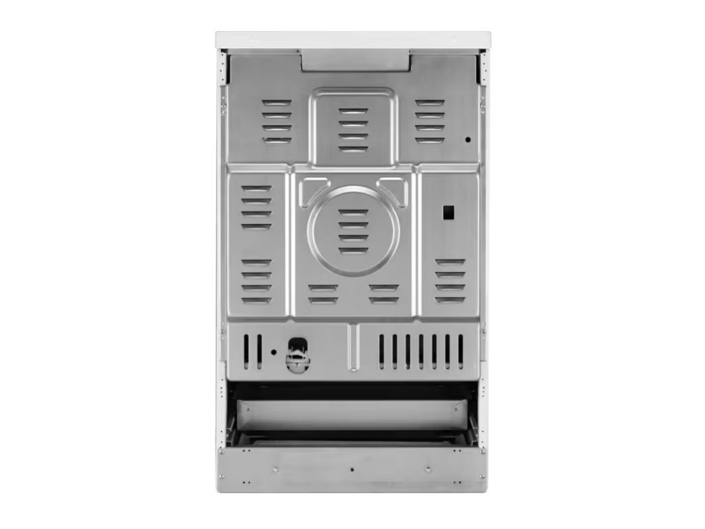 Volně stojící sklokeramický elektrický sporák, barva nerezová ocel, energetická třída A, 4 plotýnky, šířka 50 cm.