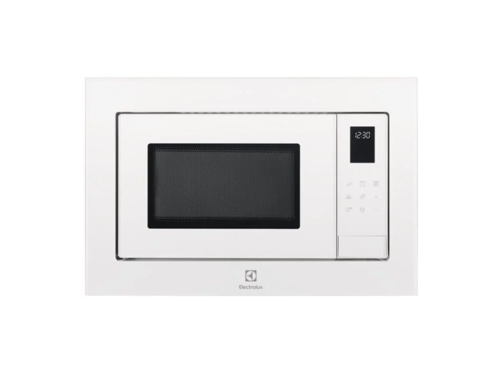 Vestavná mikrovlnná trouba, objem 25 l, barva bílá, výkon mikrovlnného ohřevu: 900 W, výkon grilu: 1000 W, 8 stupňů výkonu, mechanické ovládání, výška 38,8 cm, šířka 59,5 cm, hloubka 37,7 cm.