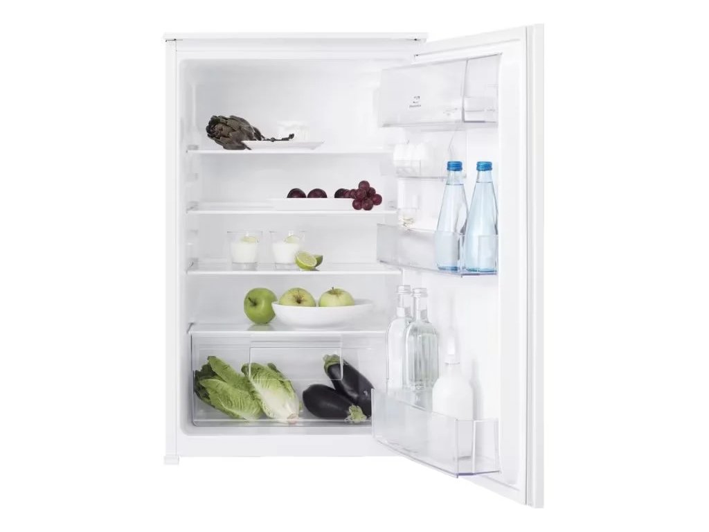 Vestavná monoklimatická lednička, objem 142 l, barva bílá. energetická třída E, šířka 55 cm, výška 87 cm.