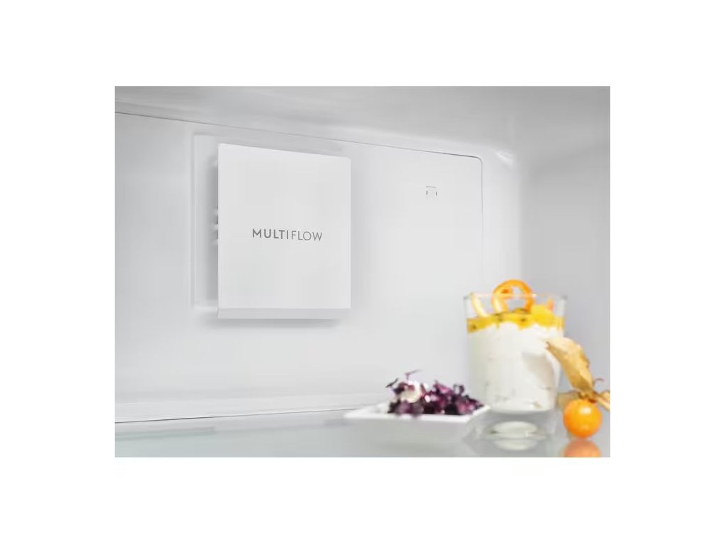 Volně stojící monoklimatická lednička, objem 390l, energetická třída E, barva: nerez ocel s úpravou proti otiskům, moderní funkce MultiFlow, výška 186 cm.