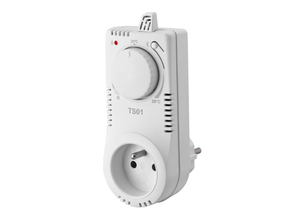 Tepelně spínaná zásuvka TS01 s funkcí nočního útlumu. Ovládání otočným kolečkem. Vhodné pro elektrické přímotopy.
