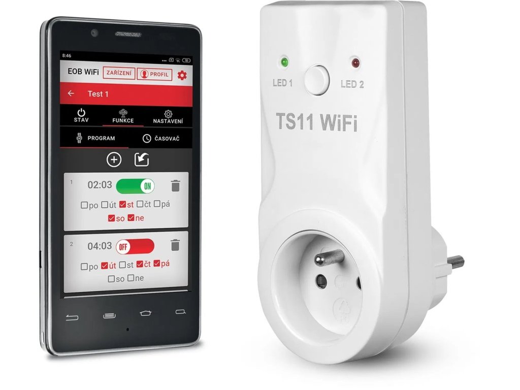 TS11 WiFi slouží ke spínání různých spotřebičů. K ovládání je nutné internetové připojení (nelze ovládat lokálně). Po naprogramování funguje i bez WiFi připojení v autonomním režimu.