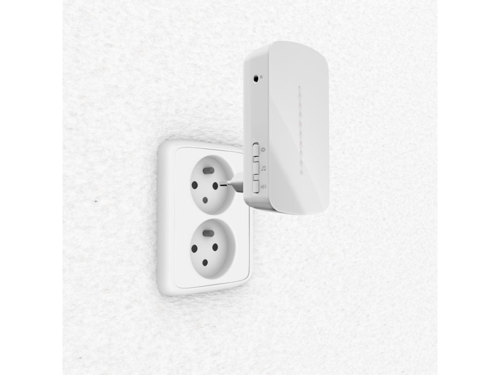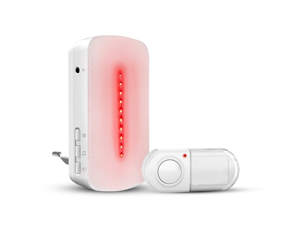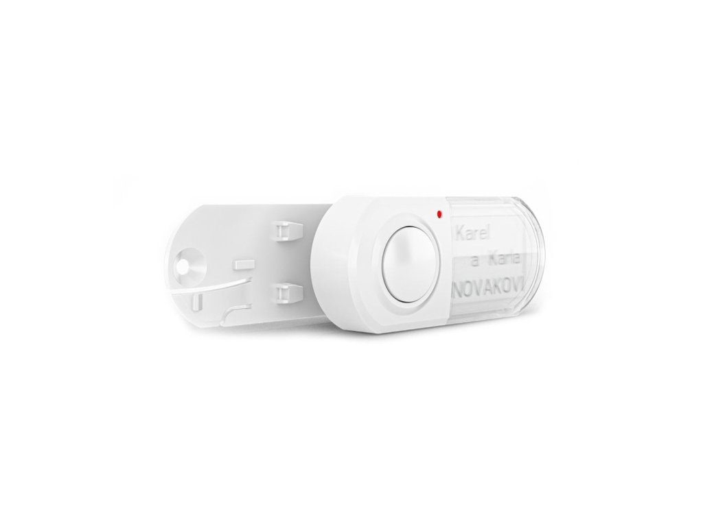 Set obsahuje domácí zvonek (přijímač) do sítě 230 VAC a tlačítko (vysílač) na baterii 3 V