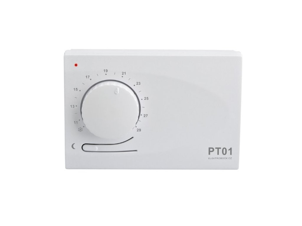 je jednoduchý elektronický prostorový termostat pro manuální regulaci vytápění a s možností automatického nočního útlumu teploty.