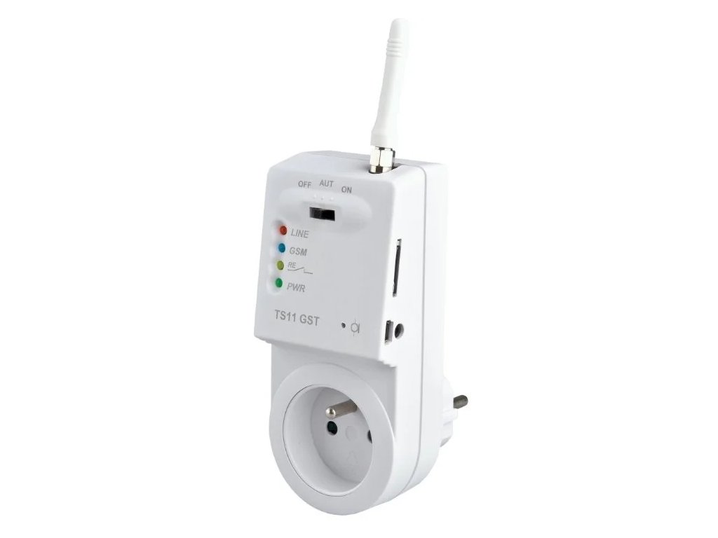 GSM zásuvka je vybavena vstupem pro teplotní čidlo nebo bezpotenciální kontakt. Tento analogový vstup rozšiřuje možnosti použití zásuvky jak pro regulaci teploty tak pro alarmové stavy. Součástí GSM zásuvky je navíc integrovaný mikrofon pro odposlech. Vkládejte sim karty typu: MiniSIM (2FF)