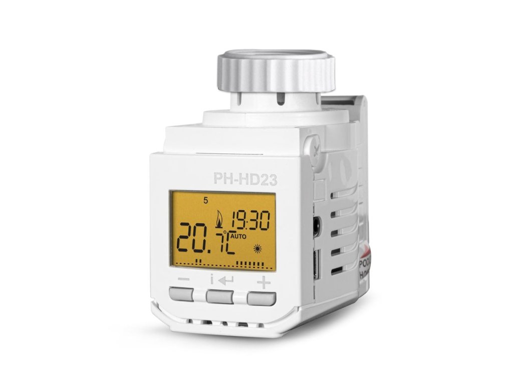 PocketHome set – regulace vytápění (3× digitální hlavice PH-HD23 s podsvíceným displejem + centrální jednotka PH-CJ-MINI), ovládání až 12 prvků.
