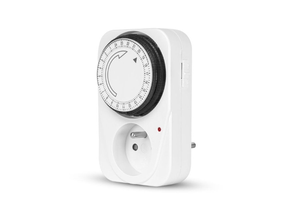 Pokud potřebujeme zapnout a vypnout spotřebič v určitém časovém rozmezí. Umožňuje funkci trvalého sepnutí zásuvky pomocí dvoupolohového přepínače. Tato funkce je indikována červenou LED diodou na čelní straně přístroje. Slouží pro časové spínání domácích spotřebičů (0–3500 W).