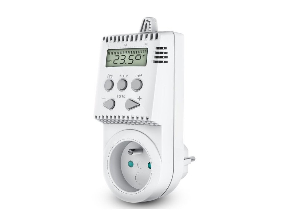 Řešení ovládání pro ELEKTRICKÉ topné soustavy (konvektory, přímotopy, el.topné žebříky, desky atd). Automatickou teplotní regulací připojeného spotřebiče můžete ušetřit až 30% energie pro topení v domácnosti, kanceláři atd. Výhodou je nastavení až 4 teplotních změn na den.