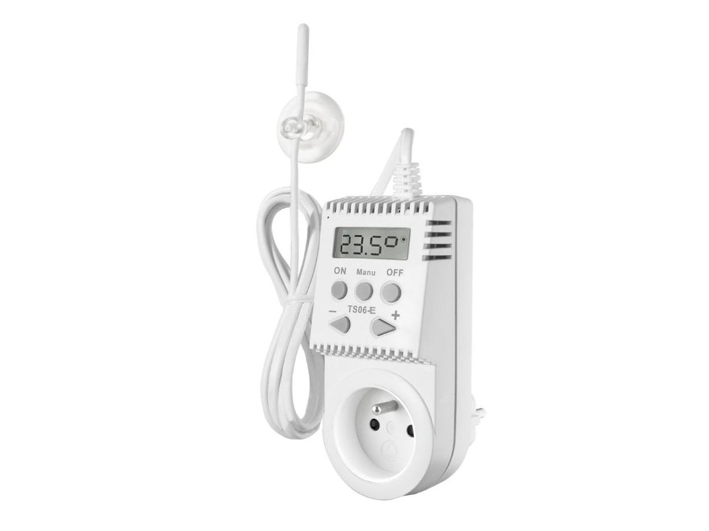 Tepelně spínaná zásuvka s externím čidlem TS06-E pro přímotopy, sálavé panely a další elektrická topidla