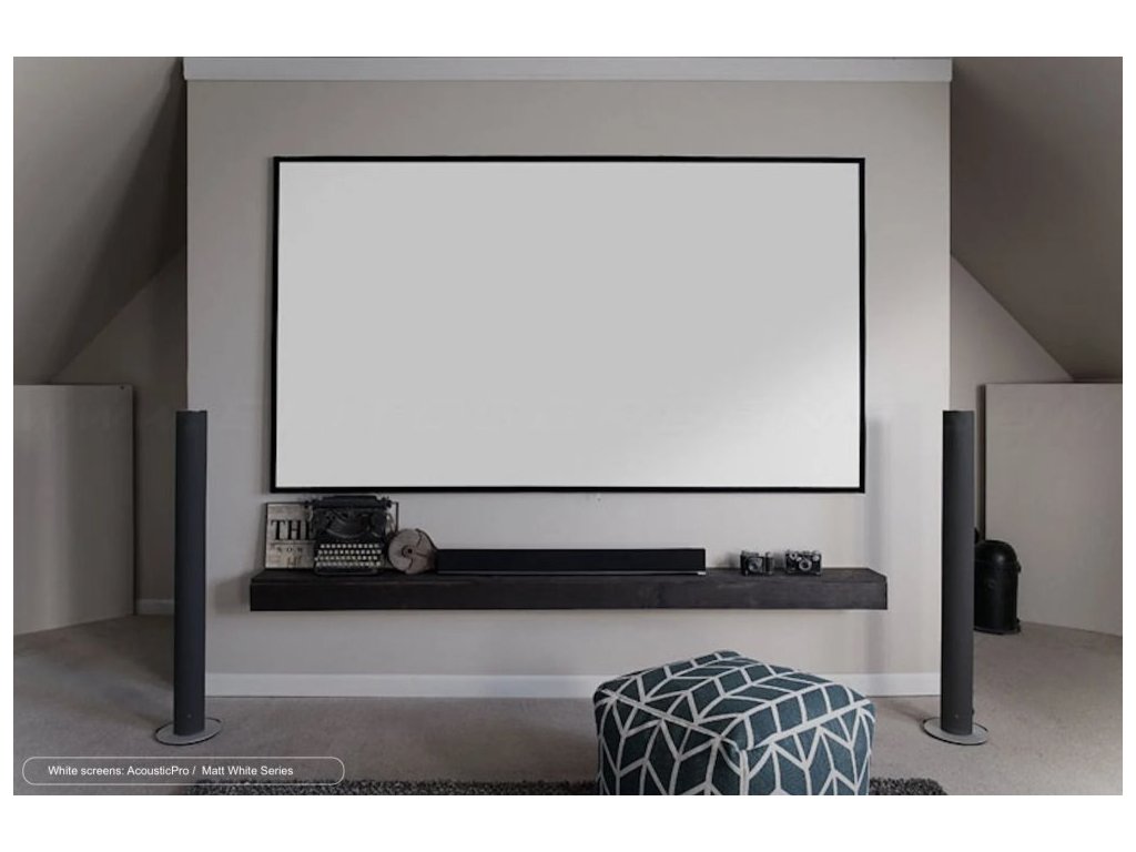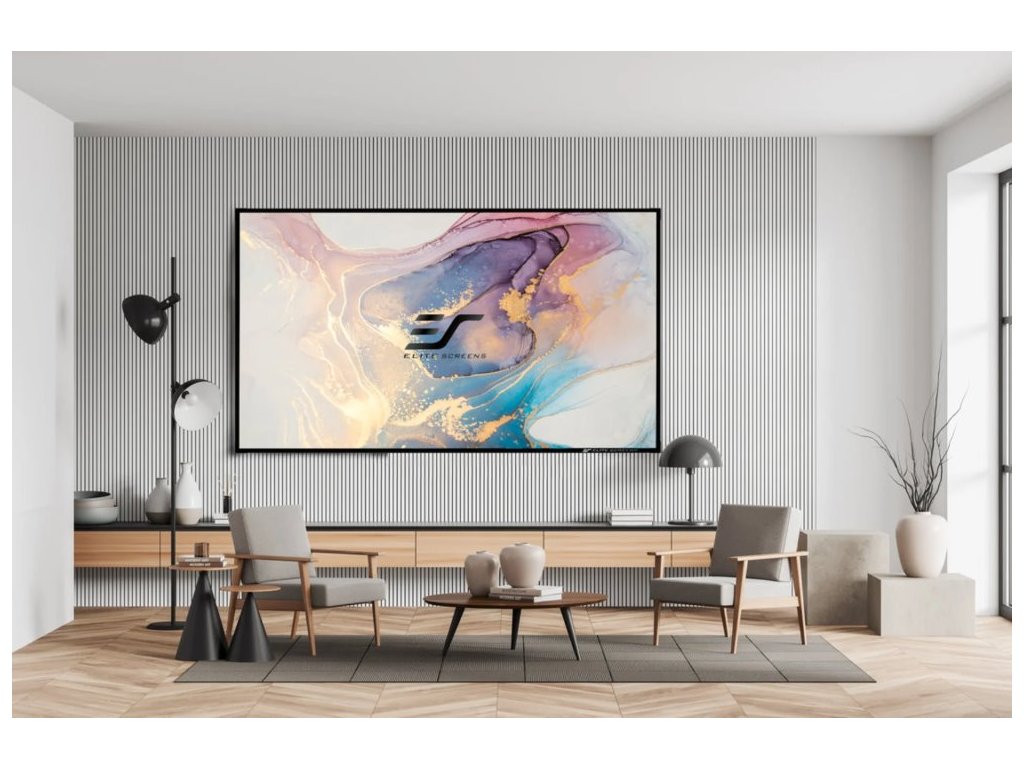 Projekční plátno v pevném rámu s úhlopříčkou 92" a poměrem stran 16 : 9. Ideální pro domácí použití v kombinaci s projektorem. Materiál CineWhite má široký rozptyl světla, černobílý kontrast a přirozené barevné ztvárnění. Plátno podporuje HDR, aktivní 3D a 4K Ultra HD Ready a nabízí šířku zorného úhlu 180°. Plátno je nataženo přes podkladový rám, působí tedy bezrámovým dojmem (možnost instalace ultratenké lišty).