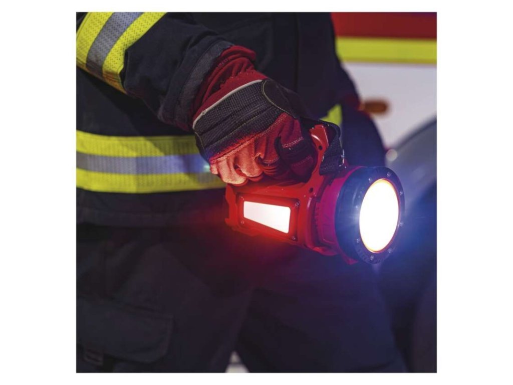 režimy svícení: SMD LED 100 %, SMD LED 40 %, SMD LED 20 %, SMD LED blikání, COB LED 100 % – bílá, COB LED 30 % – bílá, COB LED červená, COB LED červená – blikání