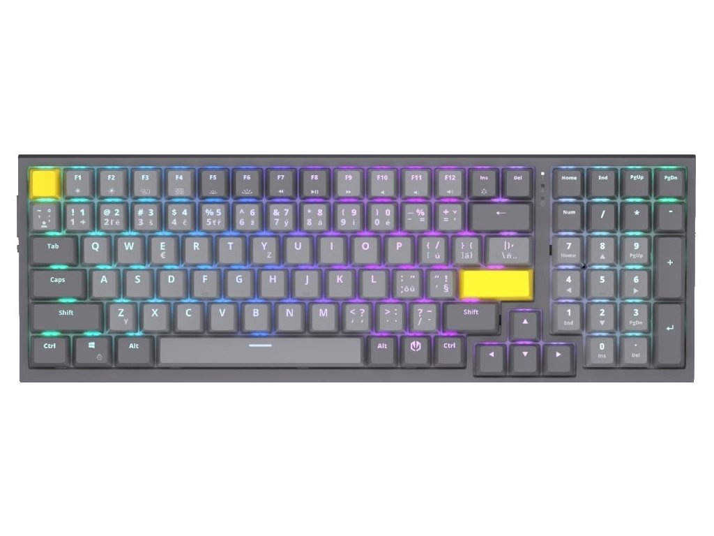 Klávesnice, herní, bezdrátová, mechanická, Endorfy Yellow by Gateron, CZ layout, ARGB, šedá