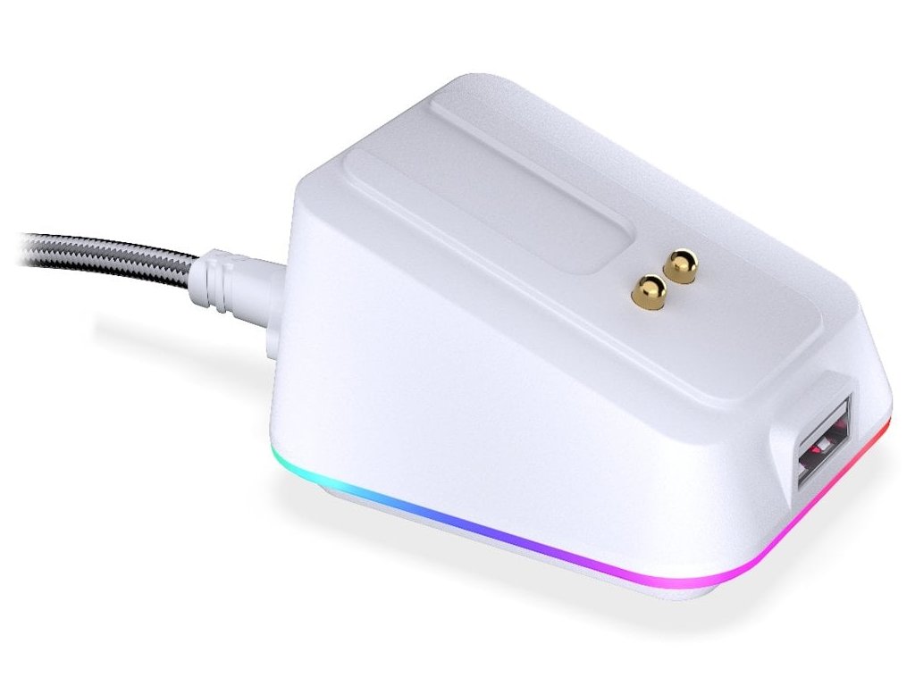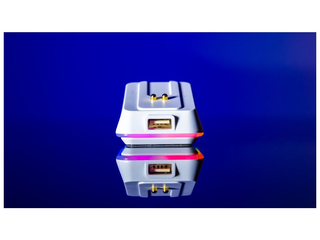 Elegantní bezdrátová nabíjecí stanice navržená jako ideální doplněk k myši LIV Wireless i LIV Plus Wireless. Díky bílému provedení s RGB podsvícením perfektně zapadne do každého herního nebo pracovního setupu a umožňuje pohodlné, rychlé nabíjení bez nutnosti připojování kabelů. Nabíjení začíná automaticky po přiložení myši na magnetickou základnu, a 11 režimů RGB podsvícení lze jednoduše měnit nebo úplně vypnout podle nálady. Stabilní gumová základna zajišťuje, že dock zůstane pevně na místě. Součástí je také USB 2.0 port pro připojení přijímače myši nebo jiného zařízení, čímž se zjednoduší kabeláž a sníží latence při používání.