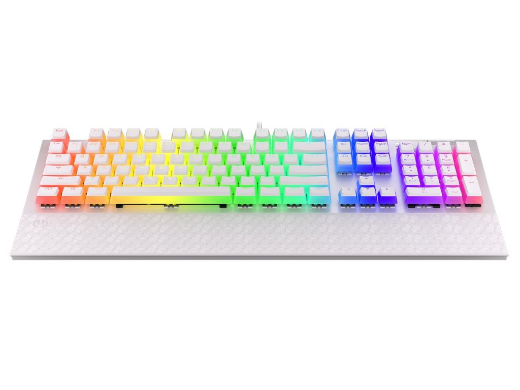 Klávesnice, herní, drátová, mechanická, Kailh Brown, RGB podsvícení, US layout, USB, bílá