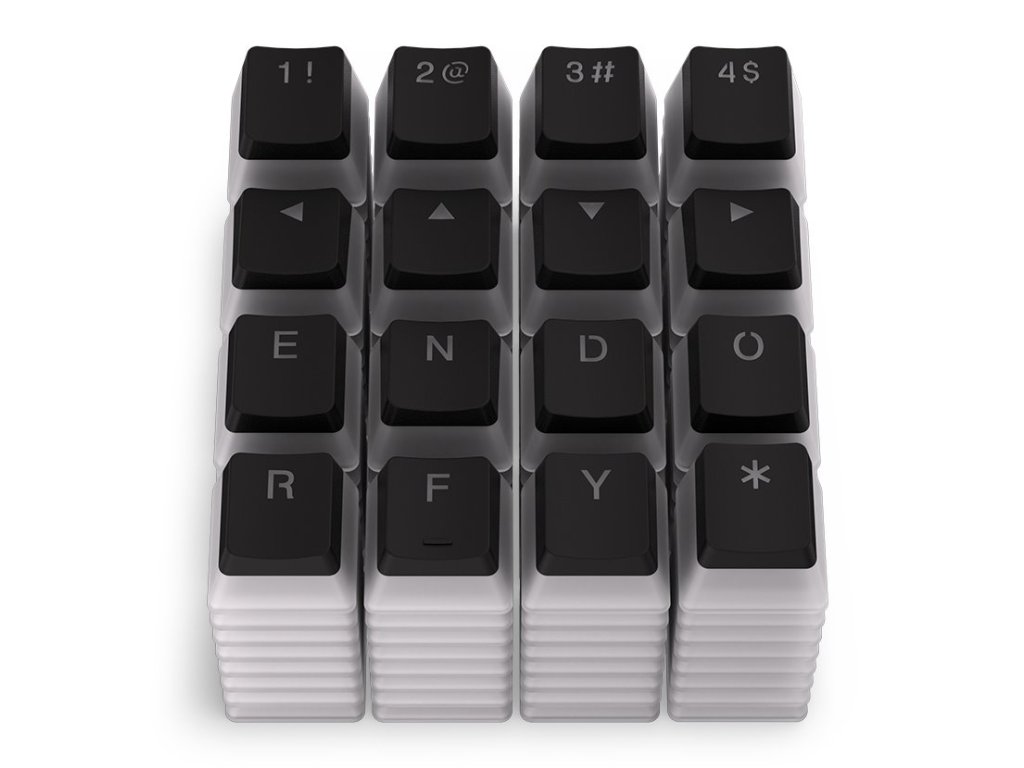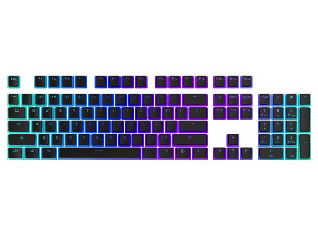 Set skládající se ze 104 kláves v průhledném dvouvrstvém stylu. PBT materiál zajistí komfort při každodenním používání i dlouhodobou odolnost proti opotřebení. Součástí je i sada tlumících gumových kroužků nainstalovaných přímo na klávesách a plastová pinzeta pro vyjmutí kláves.