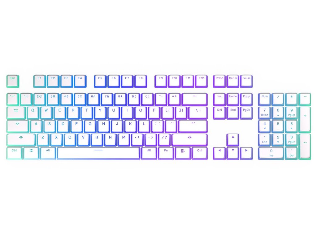 Set skládající se ze 104 kláves v průhledném dvouvrstvém stylu. PBT materiál zajistí komfort při každodenním používání i dlouhodobou odolnost proti opotřebení. Součástí je i sada tlumících gumových kroužků nainstalovaných přímo na klávesách a plastová pinzeta pro vyjmutí kláves.