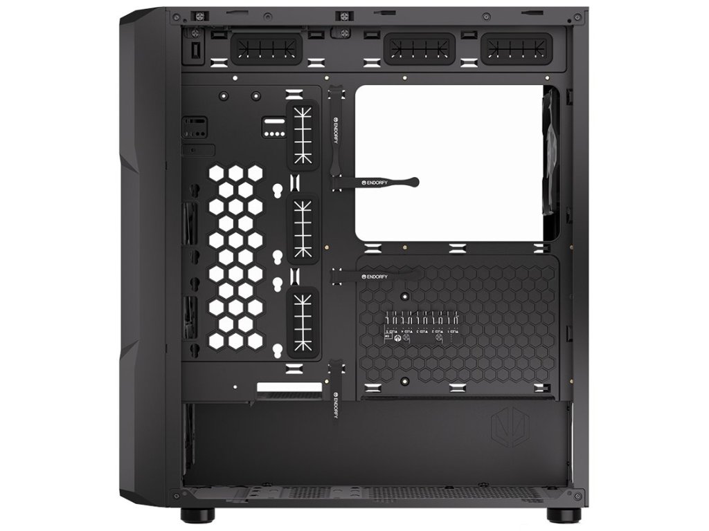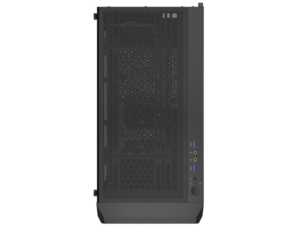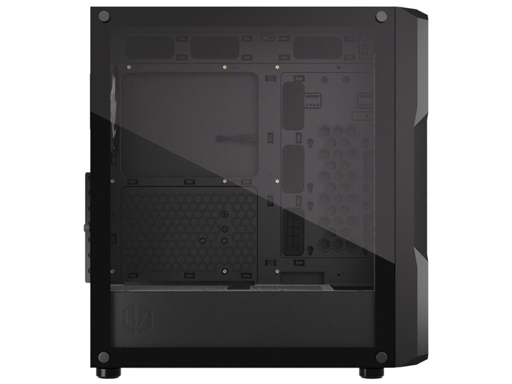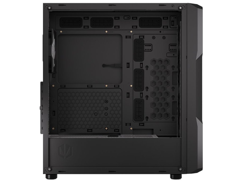 Skříň formátu Middle Tower s průhlednou bočnicí z tvrzeného skla nabízí dvě 2,5" pozice pro SSD disky a dvě 3,5" pozice pro pevné disky. Na horní části se nachází dva USB 3.0 porty, sluchátkový výstup a audio vstup pro mikrofon. Vybavena je čtyřmi 120 mm ventilátory s ARGB podsvícením, které spolu s perforovaným čelním panelem zajišťují dostatečné proudění vzduchu. Důmyslné řešení umožňuje pohodlné umístění až 360 mm dlouhého výměníku vodního chlazení na přední straně. Ve skříni je dostatek prostoru pro chladič CPU do výšky až 162 mm a grafickou kartu o délce až 370 mm. Dodávána je bez zdroje. Součástí je také interní ARGB ovladač a sada prachových filtrů.