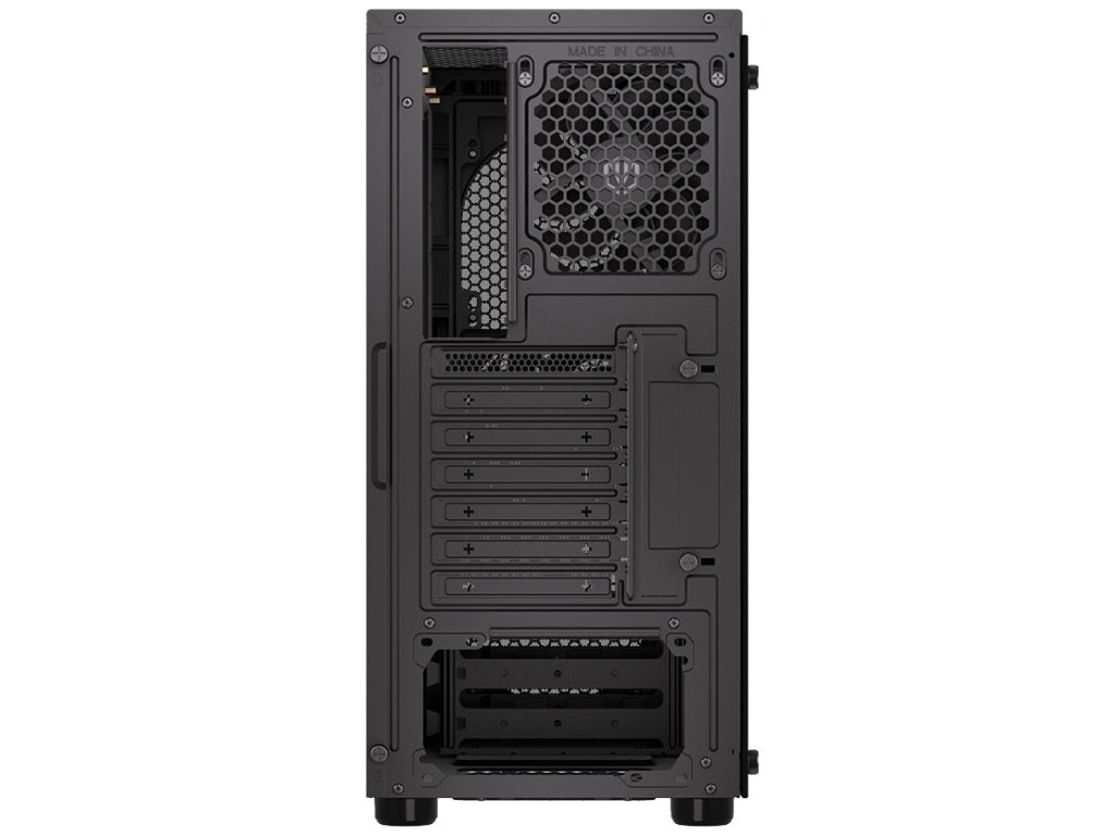 Skříň formátu Middle Tower s průhlednou bočnicí z tvrzeného skla nabízí dvě 2,5" pozice pro SSD disky a dvě 3,5" pozice pro pevné disky. Na horní části se nachází dva USB 3.0 porty, sluchátkový výstup a audio vstup pro mikrofon. Vybavena je dvěma 120 mm ventilátory, které spolu s perforovaným čelním panelem zajišťují dostatečné proudění vzduchu. Důmyslné řešení umožňuje pohodlné umístění až 360 mm dlouhého výměníku vodního chlazení na přední straně. Ve skříni je dostatek prostoru pro chladič CPU do výšky až 161 mm a grafickou kartu o délce až 350 mm. Dodávána je bez zdroje. Součástí je také sada prachových filtrů.
