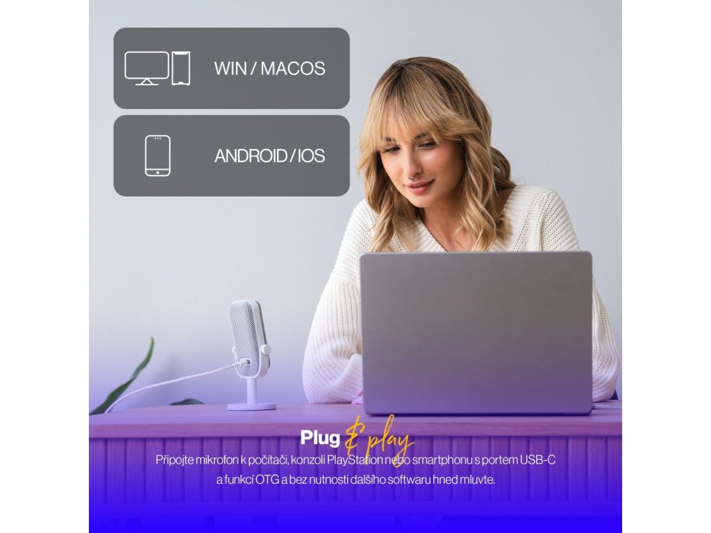 ihned po jeho připojení praktickým USB-C kabelem. Mikrofon je také