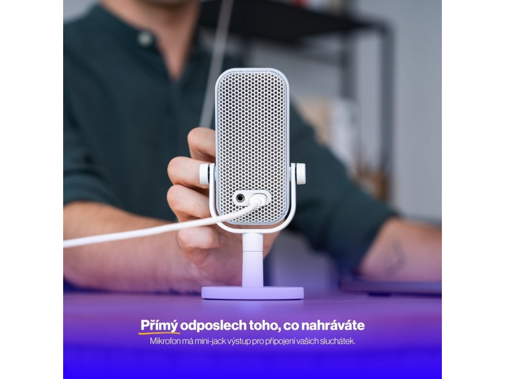 Mikrofon, drátový, stojánek, pop-up filtr, RGB podsvícení, 3,5mm jack, USB-C, bílý