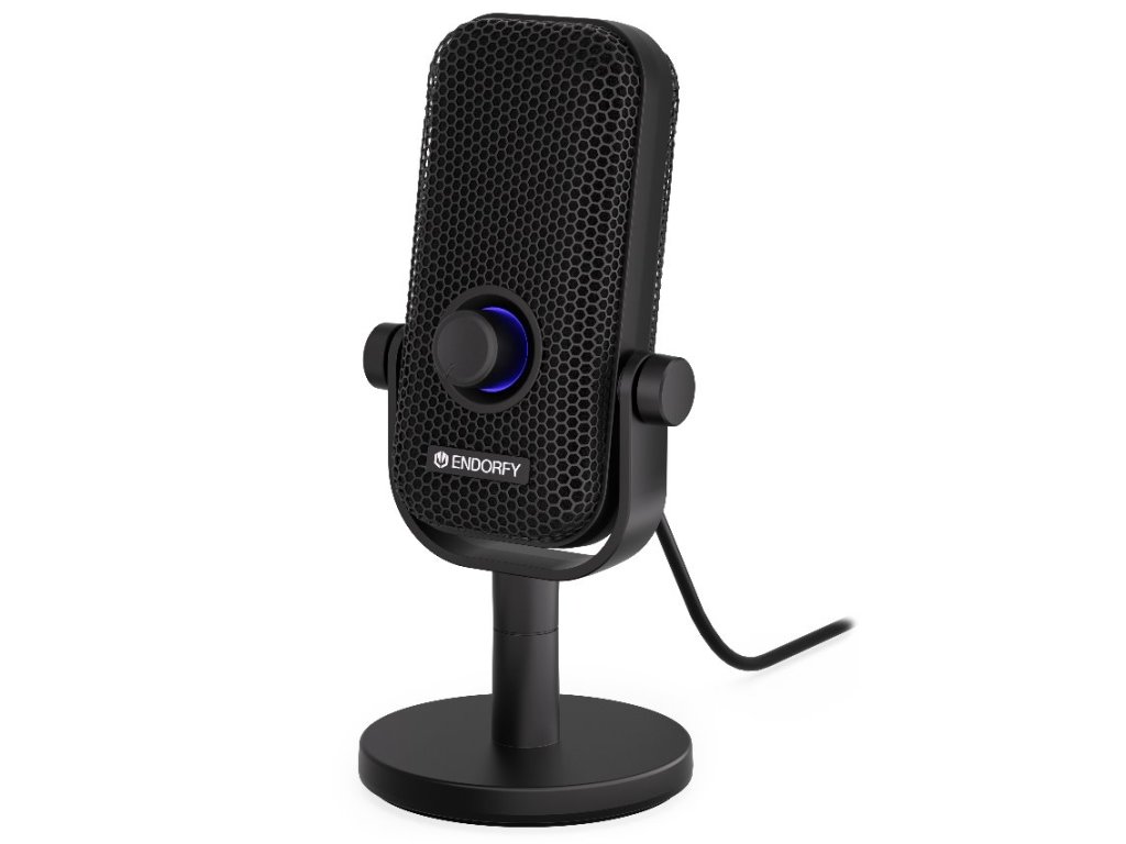 Kvalitní mikrofon s kardioidní charakteristikou a stojánkem je ideální pro streamování, natáčení vlogů, podcastů či hlasovou komunikaci. Díky své kompaktní velikosti zabírá velmi málo místa, takže se pohodlně vejde i na malé stoly. Kromě toho má dobrou povrchovou přilnavost a je kompatibilní se všemi mikrofonními rameny Endorfy. Vybaven je RGB podsvícením, dotykovým tlačítkem pro ztlumení mikrofonu a konektorem 3,5 mm jack pro připojení sluchátek. Kromě počítače můžete mikrofon připojit také k herní konzoli PS4 a PS5, nebo ke smartphonu s rozhraním USB-C a podporou OTG. Součástí balení je pěnový pop-up filtr a 2 m dlouhý připojovací kabel USB-C na USB.