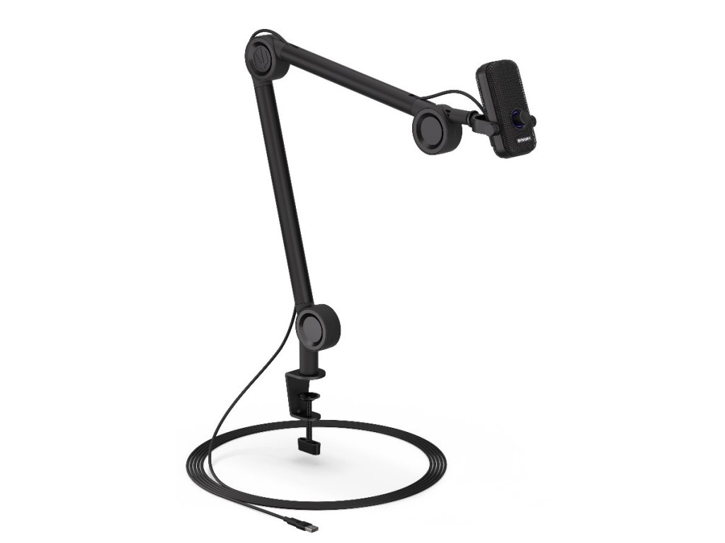 Kvalitní mikrofon s kardioidní charakteristikou a nastavitelným ramenem je ideální pro streamování, natáčení vlogů, podcastů či hlasovou komunikaci. Vybaven je RGB podsvícením, dotykovým tlačítkem pro ztlumení mikrofonu a konektorem 3,5 mm jack pro připojení sluchátek. Dva pop filtry (interní a externí) redukují vzduchový proud způsobený plozivními souhláskami, čímž vylepšují kvalitu záznamu a zároveň chrání mikrofon před nečistotami. Citlivost snímání lze rychle a snadno přizpůsobit pomocí otočného ovladače na přední straně mikrofonu. Kromě počítače můžete mikrofon připojit také k herní konzoli PS4 a PS5, nebo ke smartphonu s rozhraním USB-C a podporou OTG. Mikrofon nabízí jednoduchou a pevnou montáž pomocí šroubu ke stolní desce. Součástí balení je pěnový pop-up filtr, 3m připojovací USB-C kabel a redukce z USB-C na USB-A.