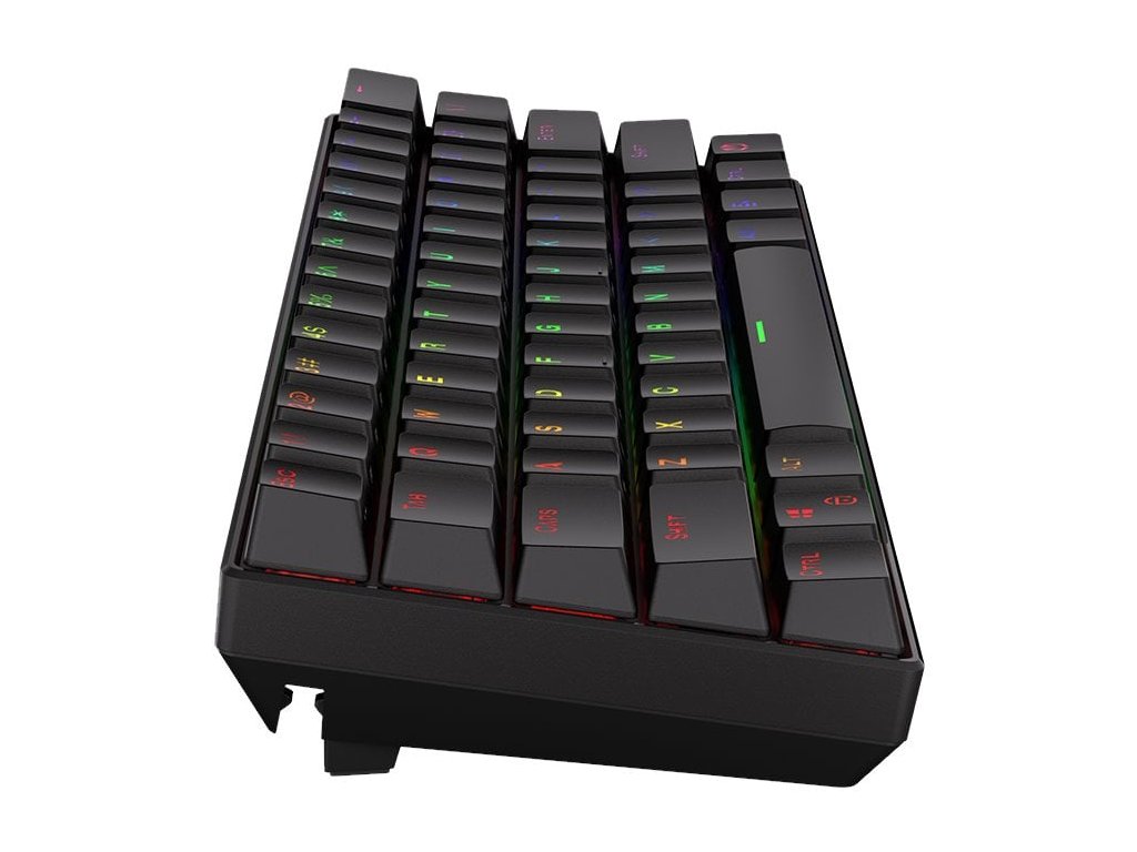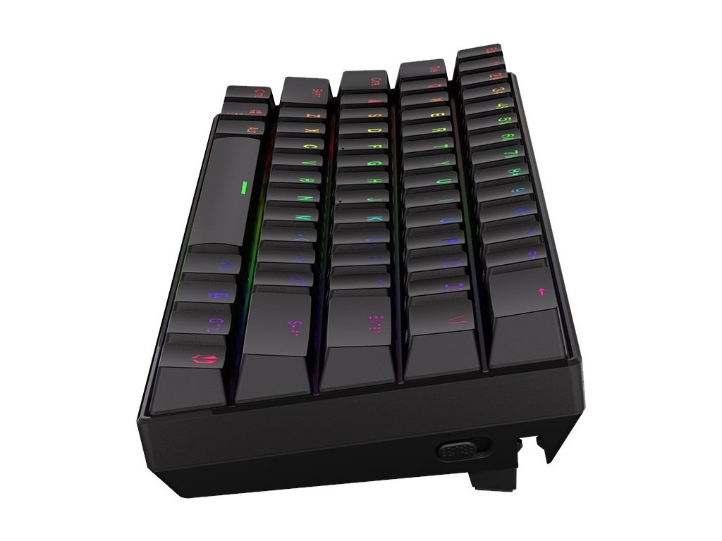 Bezdrátová mechanická herní klávesnice v kompaktním provedení je vybavena spínači Kailh Brown s perfektní odezvou a životností až 70 milionů stisků. Klávesy jsou RGB podsvícené a nabízí možnost vlastního nastavení. Klávesy jsou navíc také plně programovatelné, díky tomu lze klávesnici individualizovat přesně podle potřeb hráče a hrané hry. Samozřejmě nechybí ani funkce Anti-Ghosting a N-Key rollover. Připojení k počítači lze realizovat jak bezdrátově skrze Bluetooth či miniaturní USB přijímač a technologii 2,4 GHz, tak i drátově pomocí USB kabelu, který slouží zároveň pro nabíjení.