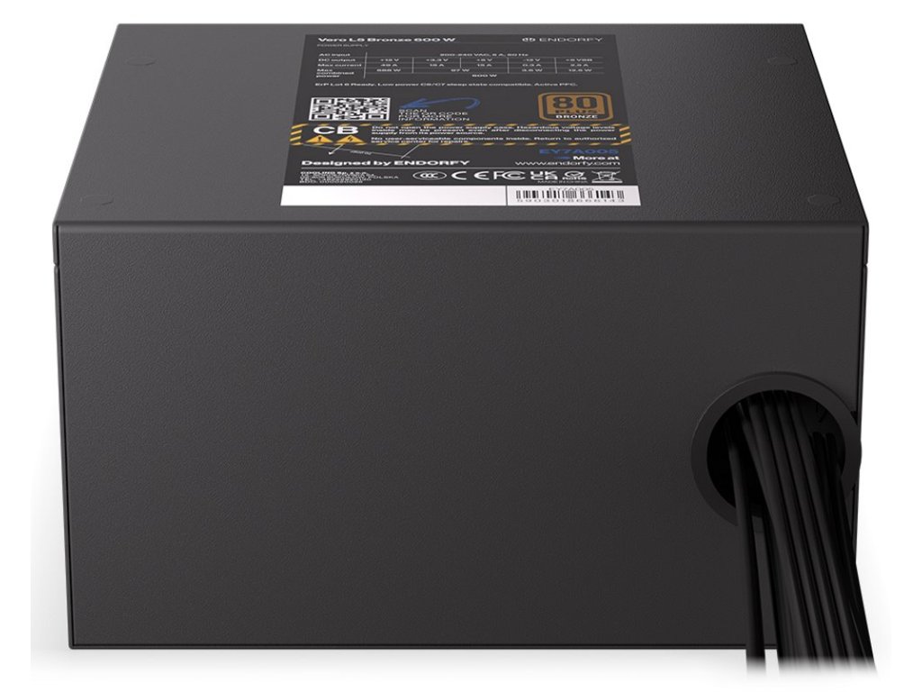 Napájecí zdroj o výkonu 600 W je osazen tichým 120 mm velkým ventilátorem. Zdroj splňuje certifikaci 80 PLUS Bronze. Součástí je napájecí síťový kabel.