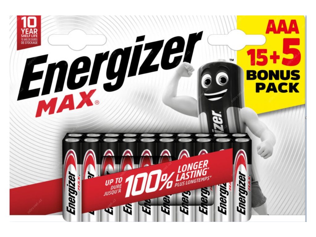 Alkalická tužková baterie Energizer MAX PLUS AAA je nejvyšší řada alkalických baterií Energizer. Výhodné balení 15+5 zdarma.