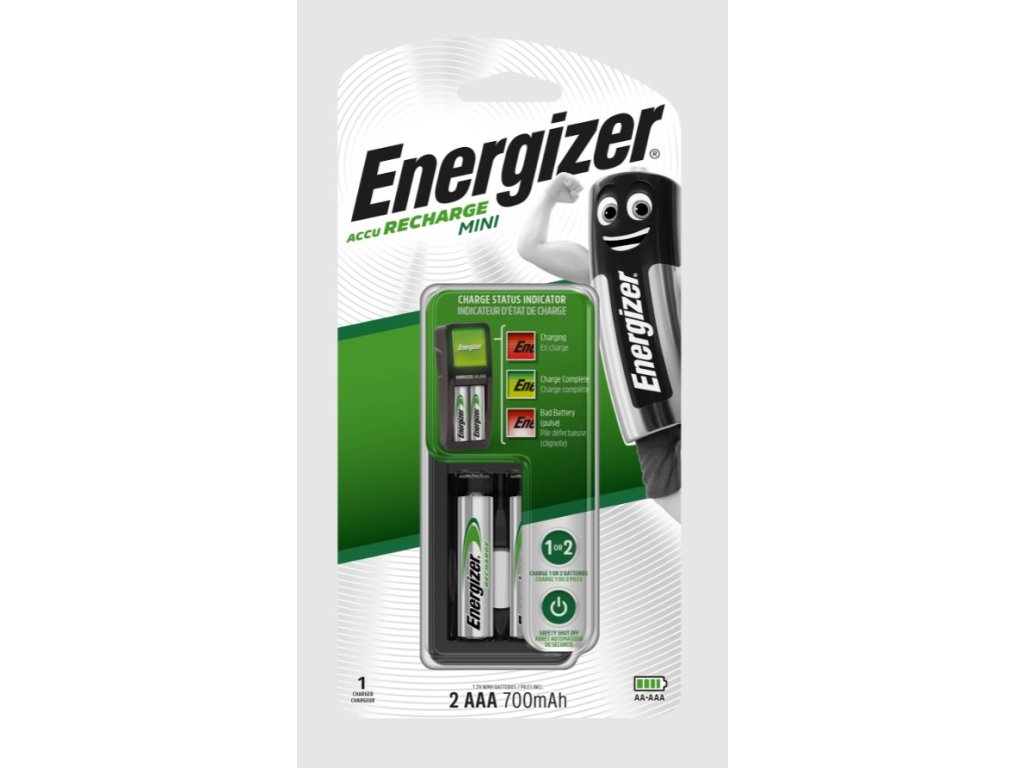 S nabíječkou Energizer se nemusíte dále starat o nákup neustále nových baterií. Energizer nabíječka je kompaktní a lze ji využít i na cestách. Součástí balení jsou 2 tužkové nabíjecí baterie NiMH, které disponují kapacitou 700 mAh