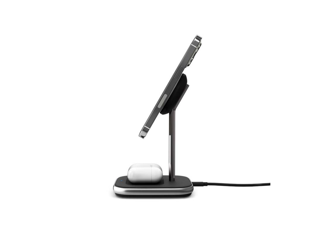 Epico 2in1 MagSafe Wireless Charger je magnetická nabíječka a stojan v jednom s MFi a exkluzivní Made for MagSafe certifikací, která zajišťuje 100% kompatibilitu s veškerými iOS aktualizacemi a zároveň nabíjí váš iPhone výkonem až 15 W. Nabíječka v sobě kombinuje výkonné funkce a prémiový a elegantní design. Současně s vaším iPhonem můžete nabíjet i AirPods s výkonem až 5 W. Díky silnému magnetu je smartphone bezpečně připevněn k nabíječce, takže můžete smartphone natočit do libovolného úhlu. Součástí balení je 20W PD nabíječka s kabelem USB-C na USB-C o délce 1 m.