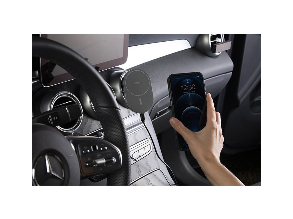 Epico Ellipse bezdrátová autonabíječka 15W s podporou uchycení MagSafe a s adaptérem v balení - vesmírně šedá
