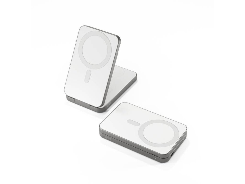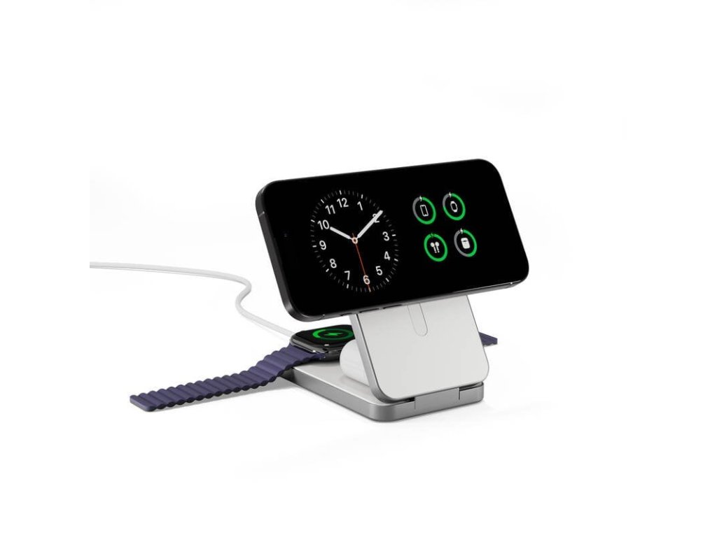 Bezdrátový nabíjecí stojánek + Powerbanka 8000 mAh (design 4v1) • Qi2 a MagSafe kompatibilní • Nabíjení až 4 zařízení současně (vč. Apple Watch 5W) • USB-C 20W PD (vstup/výstup) • Kompaktní skládací hliníkové tělo (StandBy režim)