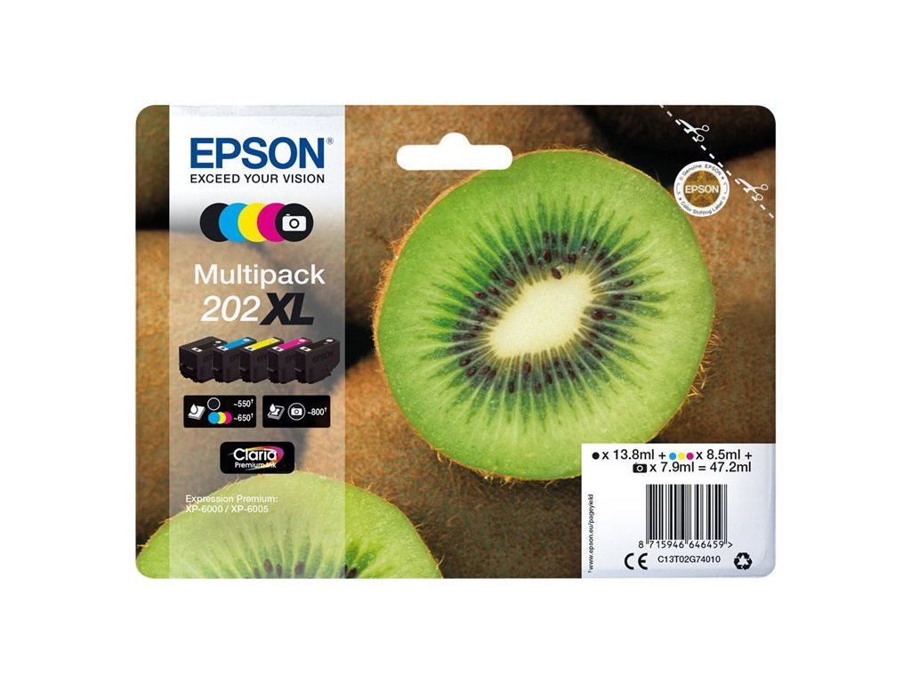 Popis výrobku Epson Multipack 202XL - 5 barev - černá, žlutá, azurová, purpurová, foto černá - originál - inkoustová cartridge