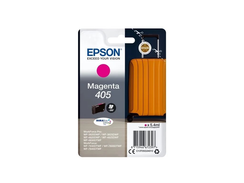 Epson 405 - purpurová - originál - inkoustová cartridge, kompatibilní s tiskárnami WorkForce WF-3820, WF3825, WF-4820, WF-4825, WF-4830, WF-7830, WF-7835, WF-7840