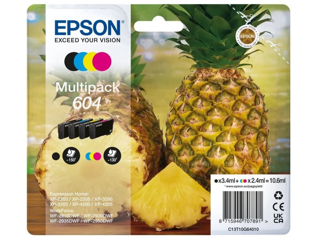 Epson 604 Multipack - 4-balení - černá, azurová, purpurová, žlutá - originální - inkoustová cartridge, pro Expression Home XP-2200, 2205, 3205, 4200, 4205; WorkForce WF-2910, 2930, 2935, 2950