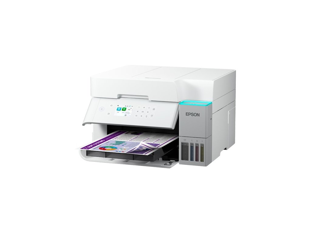 EcoTank poskytuje bezproblémový domácí a kancelářský tisk – inkoustové nádržky s mimořádně vysokou kapacitou umožňují doplňování bez nepořádku a lahvičky s bajonetovým mechanismem jsou navrženy tak, aby bylo možné vložit pouze správnou barvu. Díky přednímu ukazateli hladiny inkoustu je snadné vidět, kdy má být inkoust doplněn, a stylové modré světlo na vrchní straně krytu inkoustové nádržky také umožňuje sledovat stav tiskárny na první pohled.