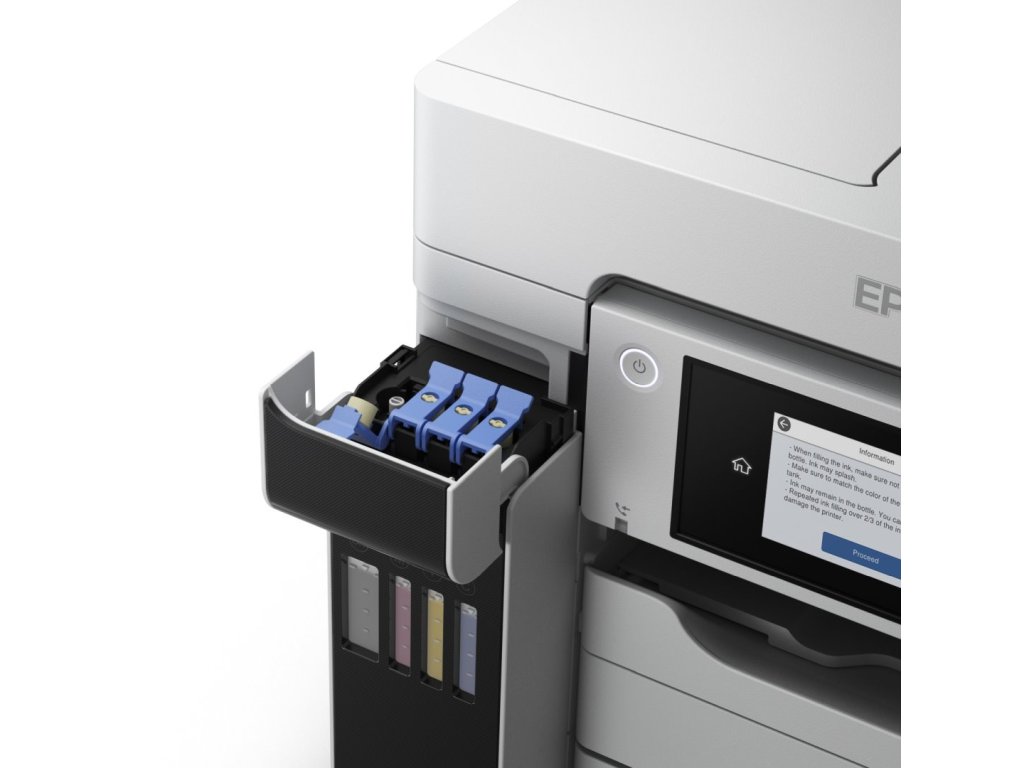 tiskárna inkoustová multifunkční, A4, 4800x2400dpi, integrovaný tankový systém náplní, tisk ISO černě 25 str/min černě, barevně 25 str/min, skener 1200x2400dpi, zásobník na 250 listů, duplex, DADF, USB, LAN, WiFi