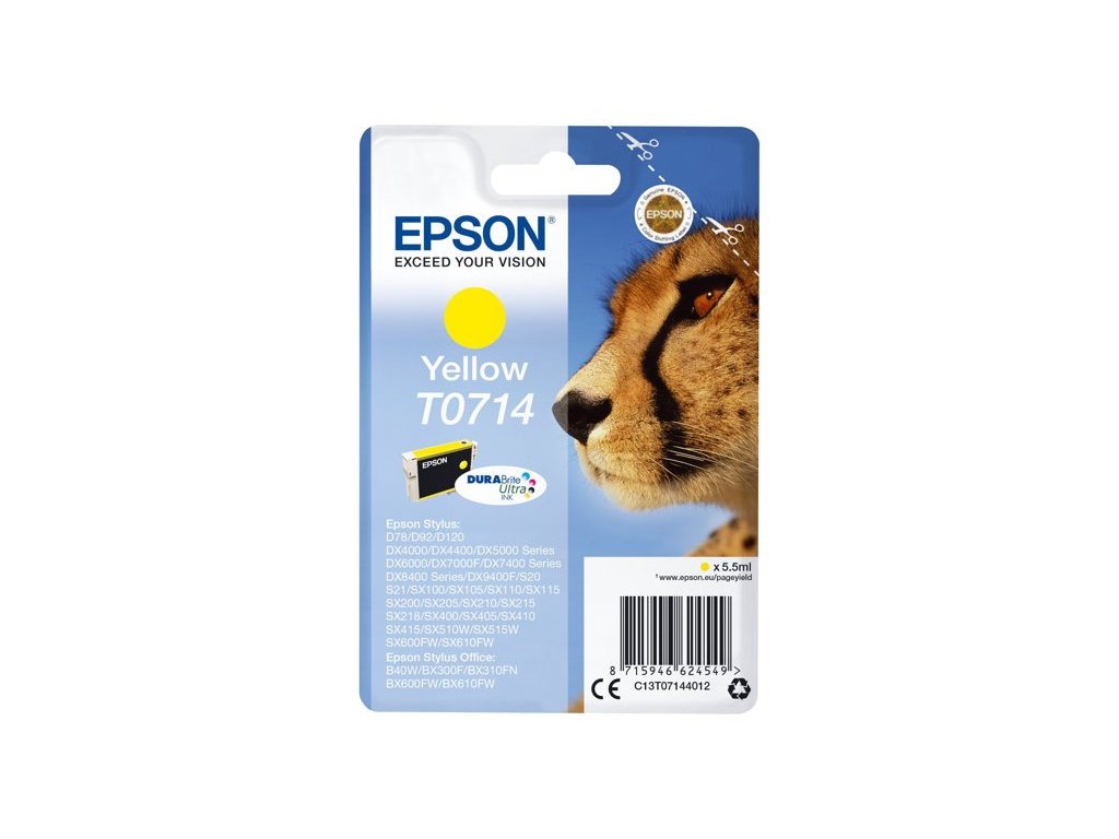 Epson T0714 - žlutá - originál - inkoustová cartridge, pro Stylus DX9400, SX115, SX210, SX215, SX218, SX415, SX515, SX610; Stylus Office BX310, BX610