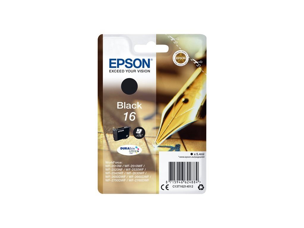 Epson 16 - černá - originál - inkoustová cartridge, pro WorkForce WF-2010W, WF-2510WF, WF-2520NF, WF-2530WF, WF-2540WF, WF-2630, WF-2630WF, WF-2650DWF, WF-2660DWF, WF-2750DWF, WF-2760DWF