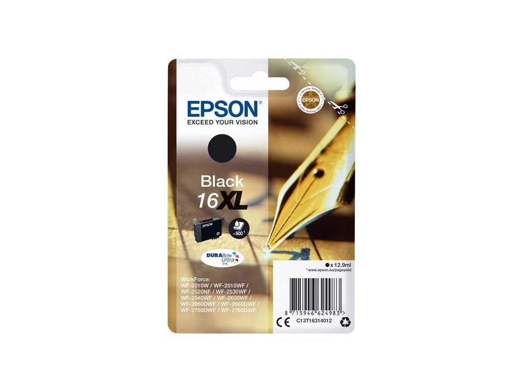 Epson 16XL - velikost XL - černá - originál - inkoustová cartridge, až 500 stran, WorkForce WF-2010W,WF-2510WF,WF-2520NF,WF-2530WF,WF-2540WF,WF-2630,WF-2630WF,WF-2650DWF,WF-2660DWF,WF-2750DWF,WF-2760DWF