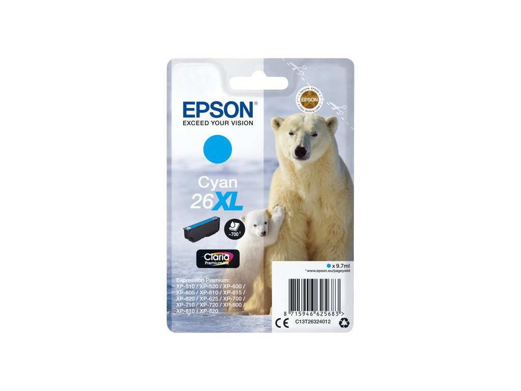 Epson 26XL - XL - azurová - originál - inkoustová cartridge, pro Expression Premium XP-510, 520, 600, 605, 610, 615, 620, 625, 700, 710, 720, 800, 810, 820