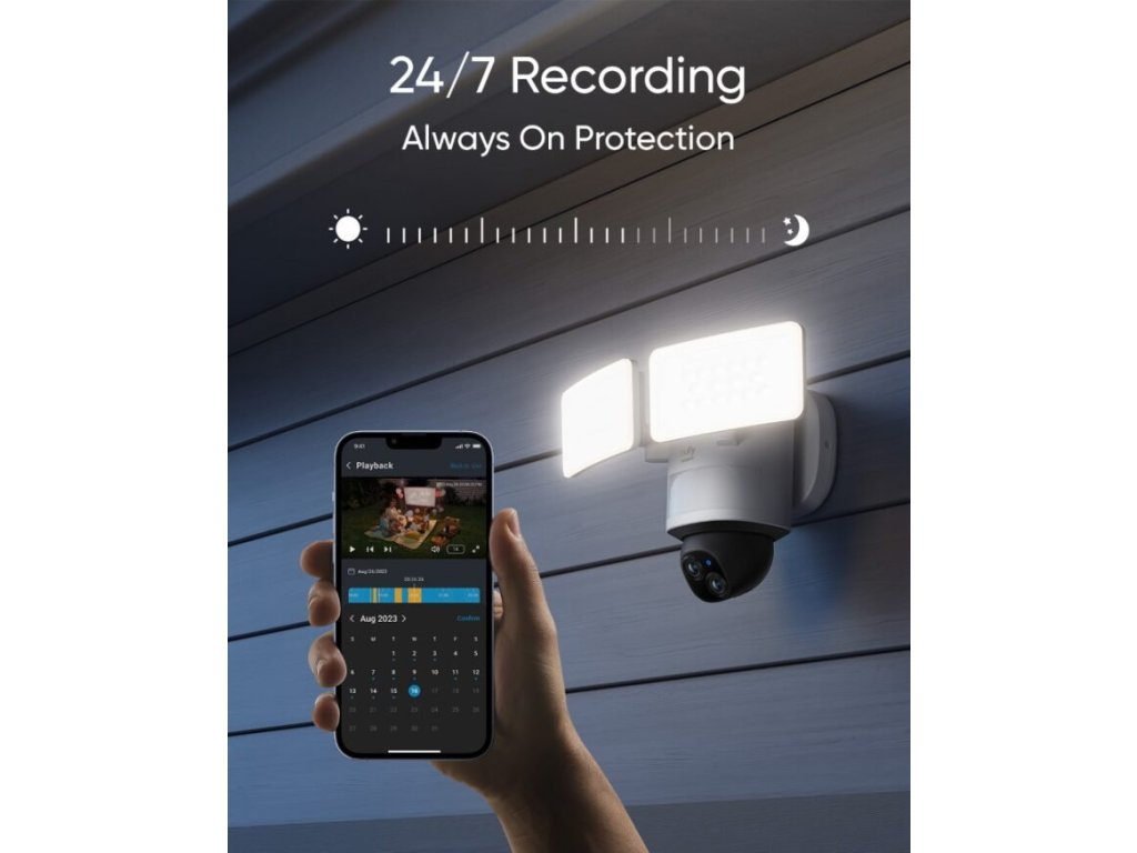 Eufy Floodlight Cam E340 je duální bezdrátová bezpečnostní kamera s 360° pokrytím.