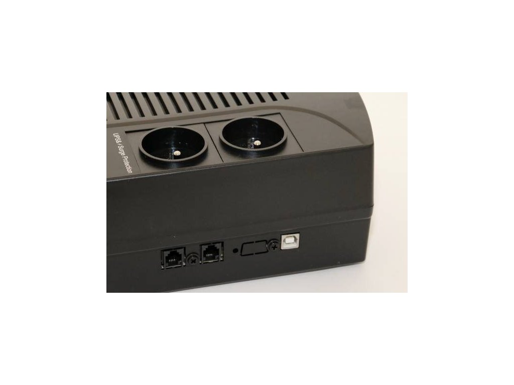 záložní zdroj, 4 zásuvky (2x zálohovaná, 2x pouze přepěťová), 850VA/480W, line interactive, ochrana RJ11, USB, 6.8kg, barva černá
