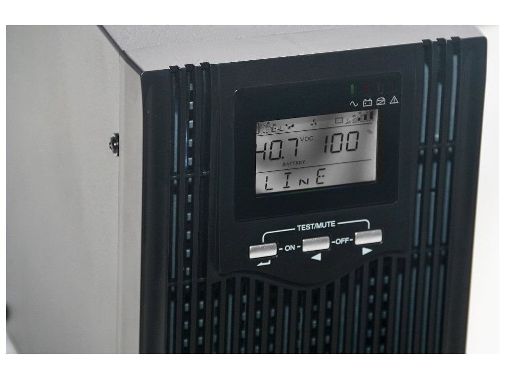 záložní zdroj UPS, 4 zásuvky, 2000VA/1600W, pure sine wave (čistý sinusový průběh), LCD displej, ochrana připojení RJ45, datové rozhraní USB, provedení černá