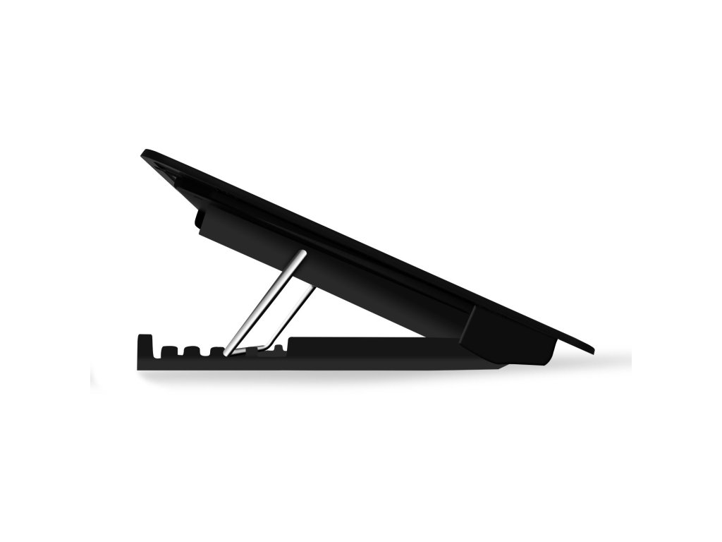 Chladící podložka pro notebook, 2x ventilátor, RGB podsvícení, 2x USB vstup, polohovatelná (5 úhlů), regulace rychlosti otáček ventilátorů
